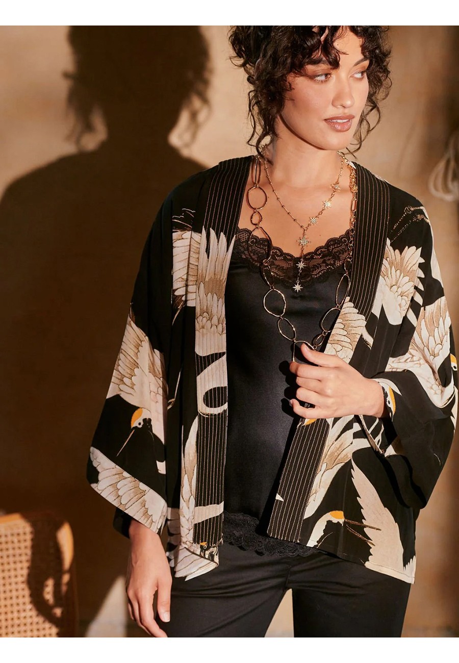 STORK BLACK CREPE KIMONO