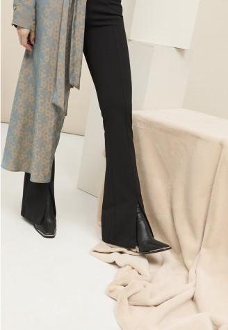 Pantalón de sarga con abertura en el bajo.