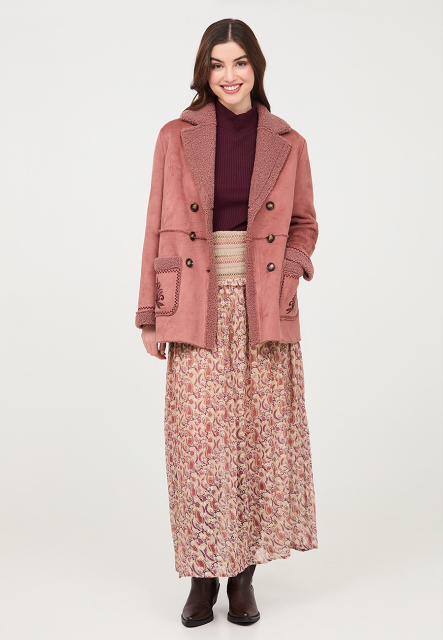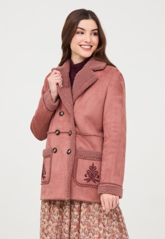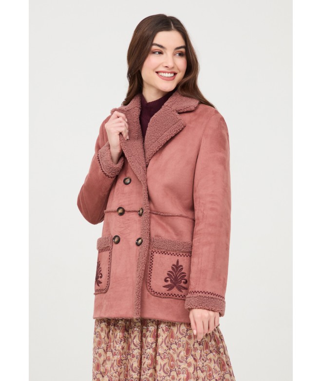 ABRIGO CON INTERIOR DE BORREGO Y DETALLE BOLSILLOS BORDADOS
