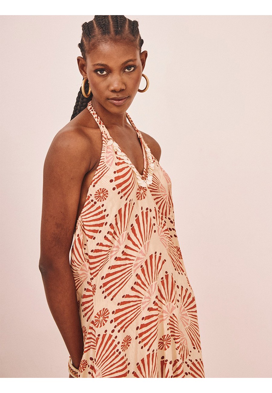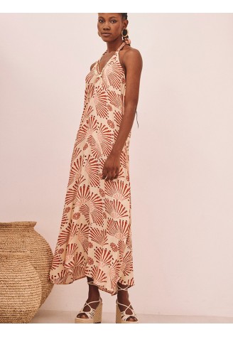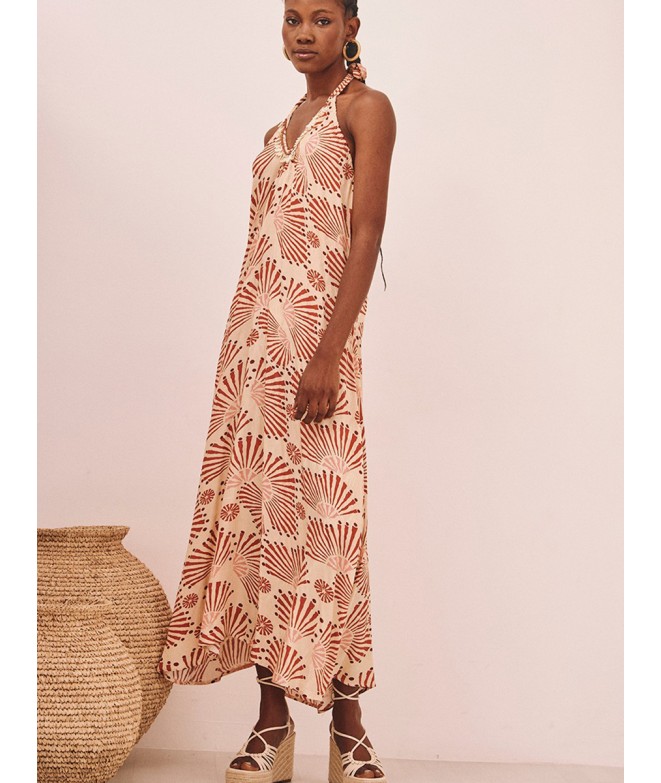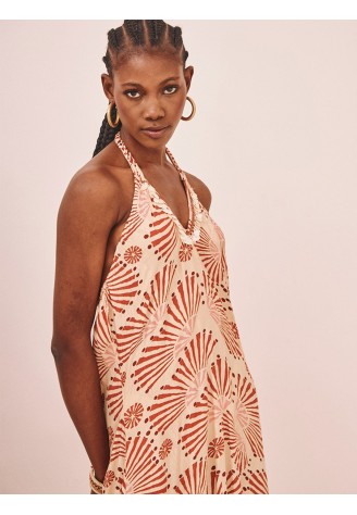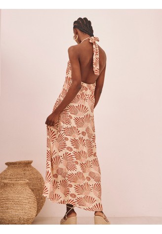 VESTIDO HALTER LARGO ESTAMPADO Y BORDADO