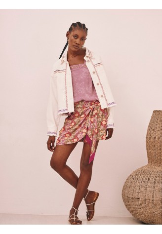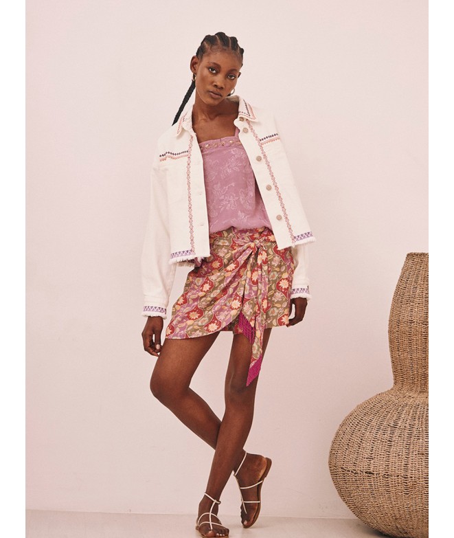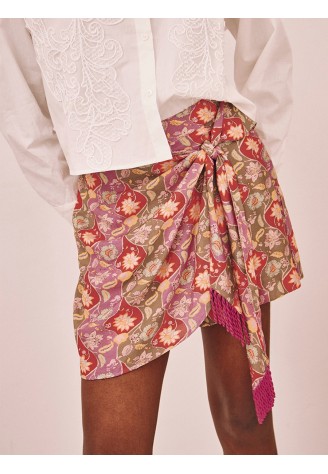 FALDA SHORT ESTAPADA ANUDADA FLECOS