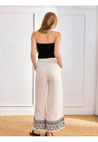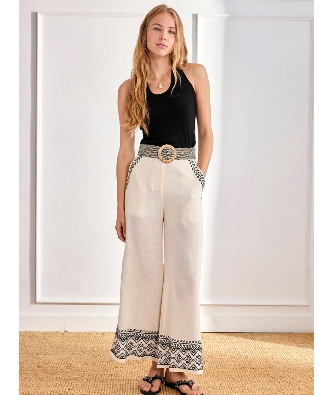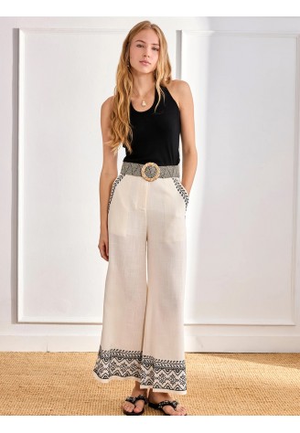 PANTALON LINO BORDADO BAJO Y BOLSILLO