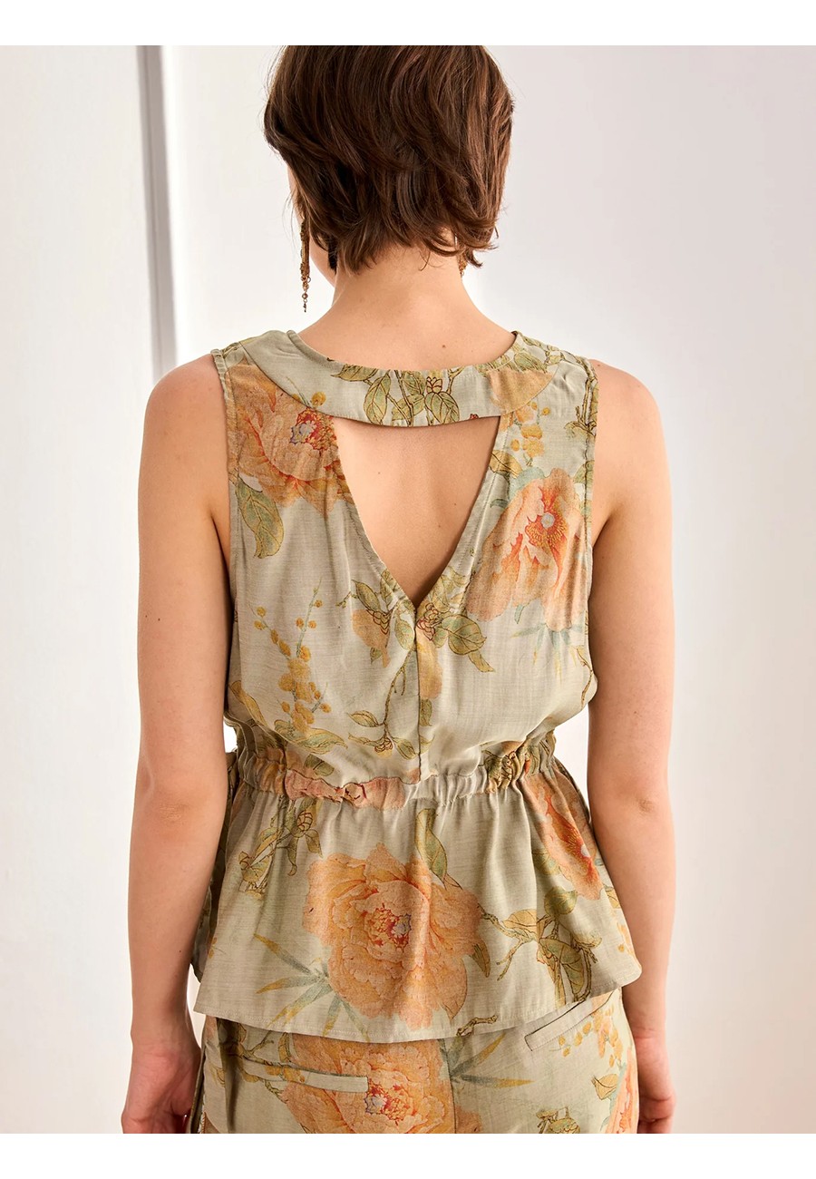TOP ESTAMPADO ESCOTE PICO Y ANUDADO EN CINTURA