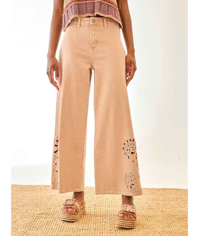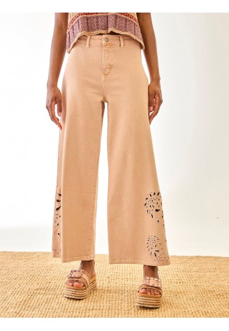 PANTALON DENIM EN ALGODON CON DETALLE BORDADO