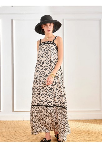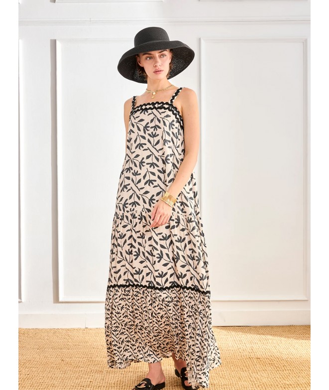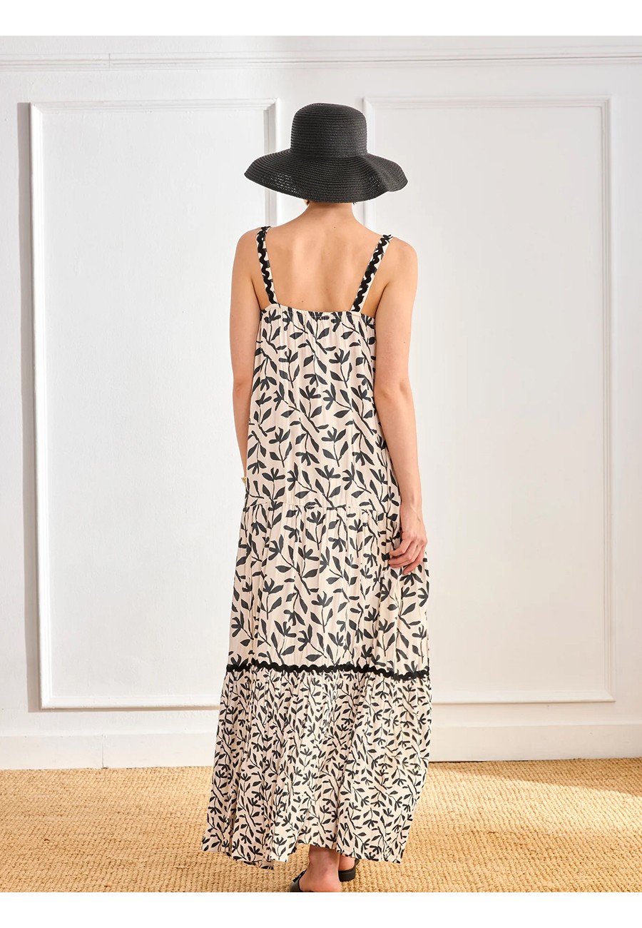 VESTIDO VISCOSA ESTAMPADO HOJAS BICOLOR