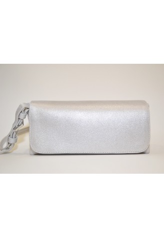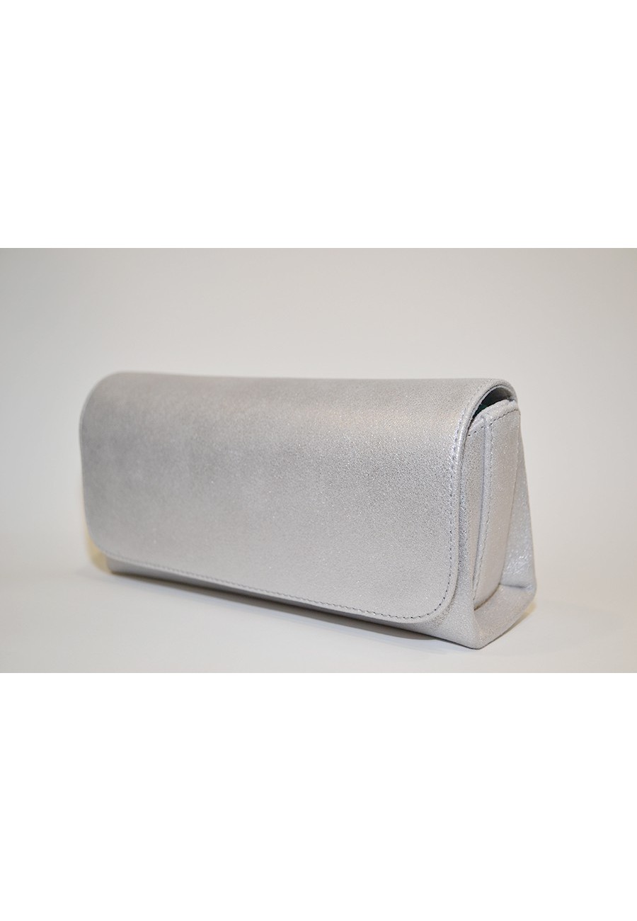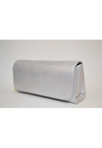 Clutch de piel metalizada color plata altura 10 cm anchura 22 cm y fondo 6 cm
