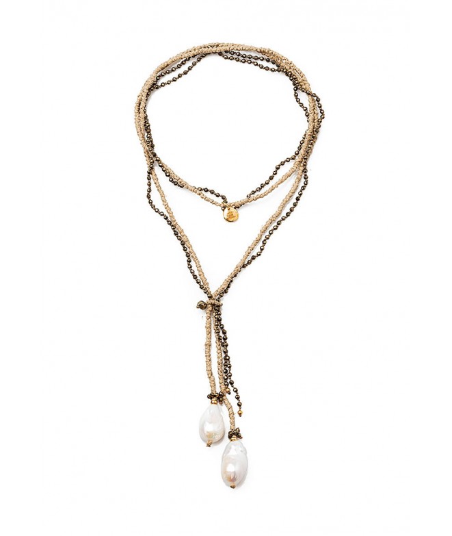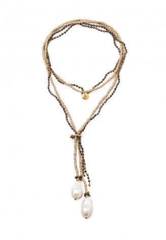 LARIAT LINO ANUDADO A MANO CON 2 PERLAS BARROCAS