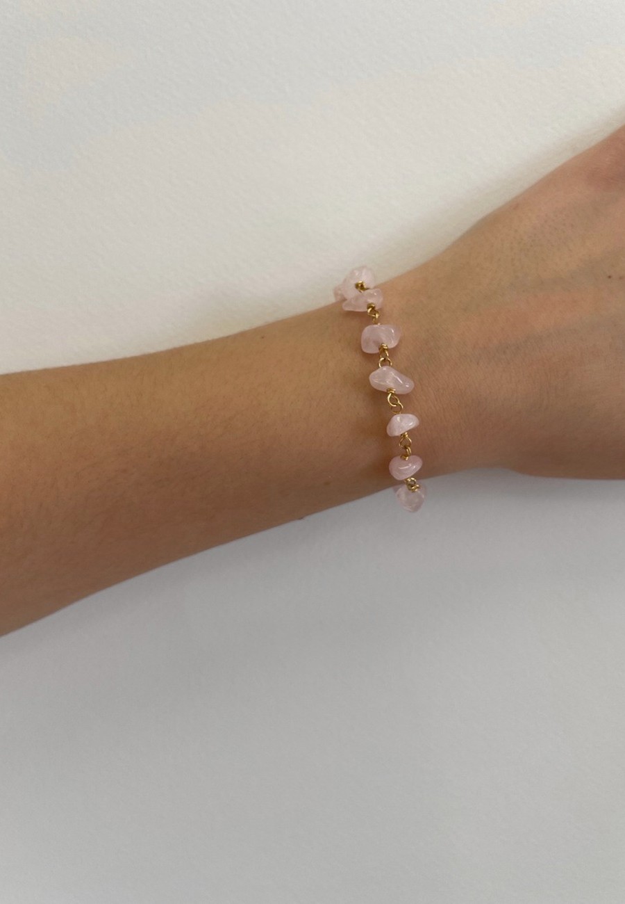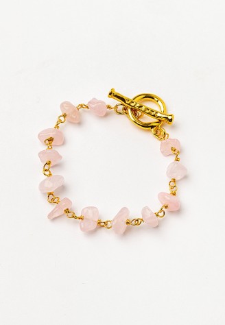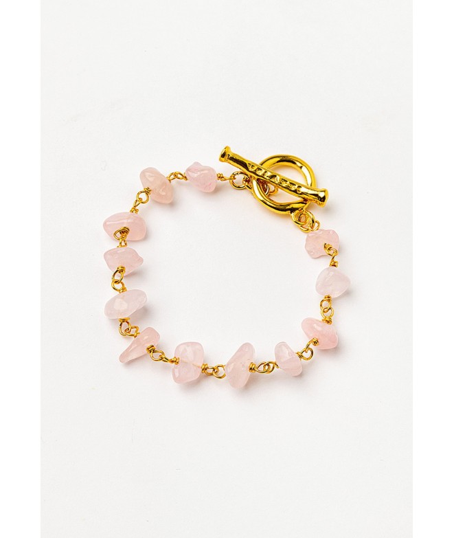 PULSERA LINKS BAÑO ORO CON CUARZO ROSA