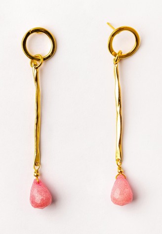 PENDIENTES BAÑO ORO CON JADE ROSA