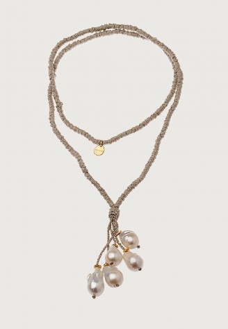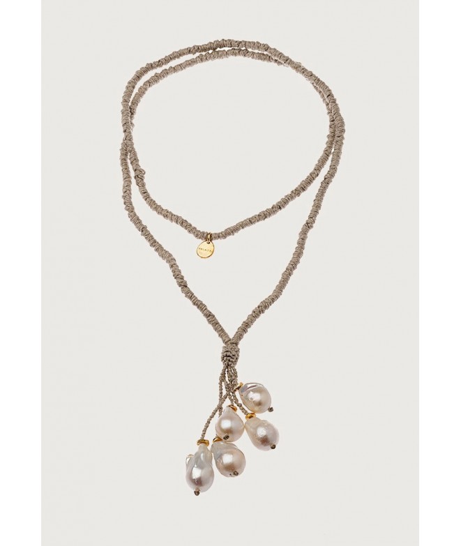 COLLAR LARGO LINO ANUDADO A MANO CON 5 PERLAS BARROCAS