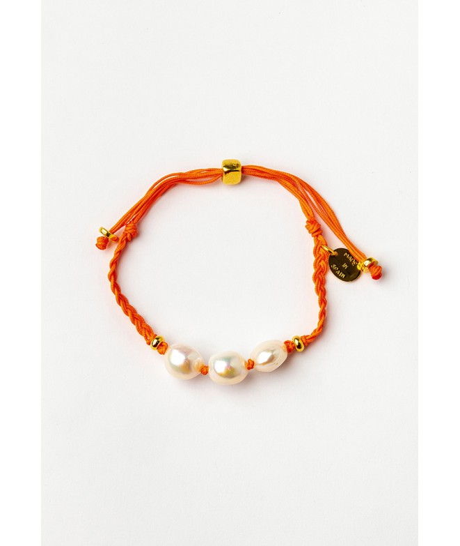 PULSERA TRENZADA A MANO CON 3 PERLAS