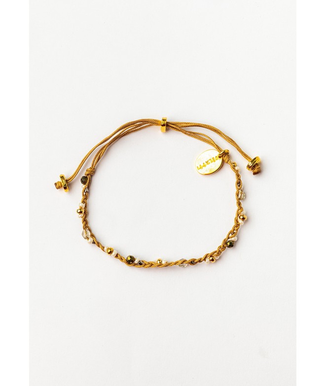 PULSERA TRENZADA A MANO CON HILO BEIGE