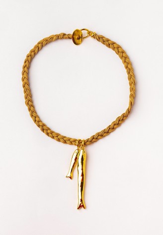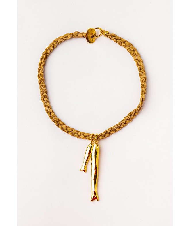 COLLAR CORTO TRENZADO A MANO CON PEZ BAÑADO EN ORO