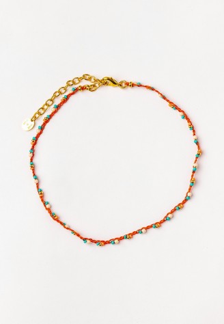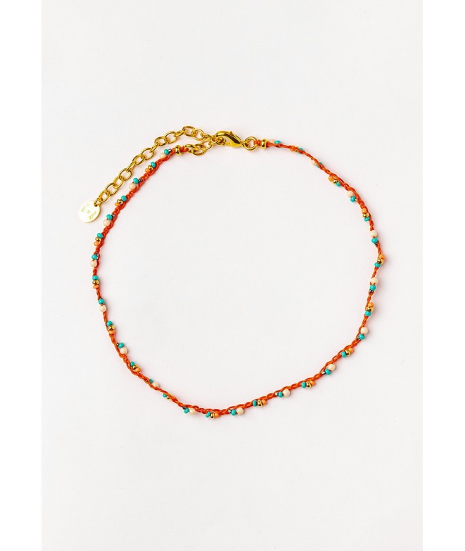 COLLAR CORTO TRENZADO A MANO CON PIEZAS BAÑO ORO, ROCALLA Y CRISTAL