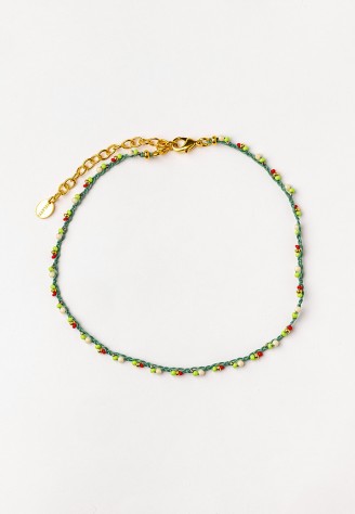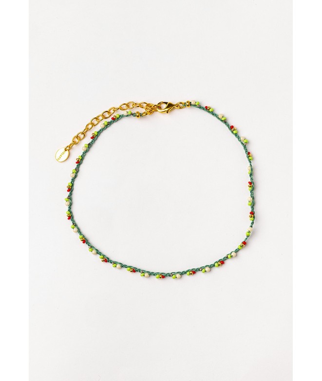 COLLAR CORTO TRENZADO A MANO CON PIEZAS BAÑO ORO, ROCALLA Y CRISTAL