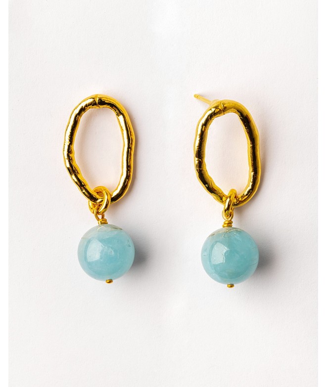 PENDIENTES BAÑO ORO CON AGUAMARINA