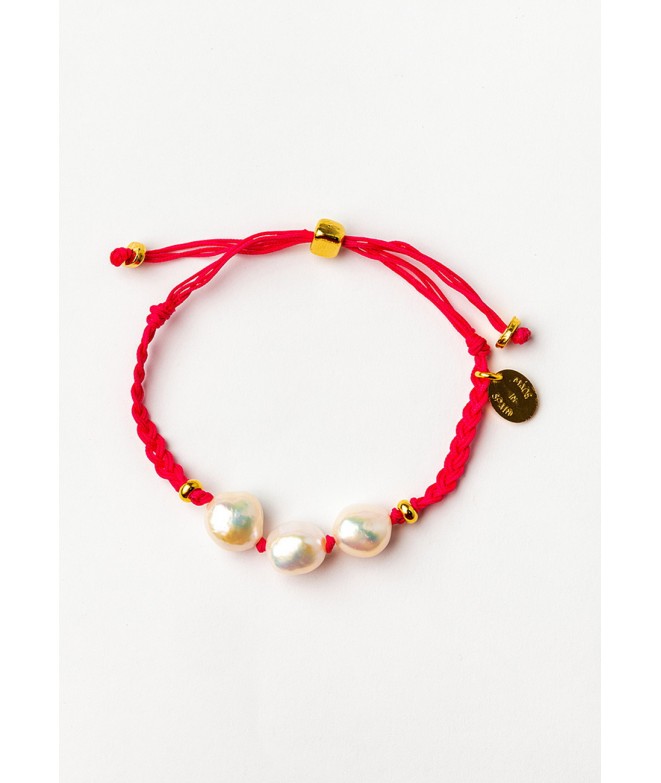 PULSERA TRENZADA A MANO CON 3 PERLAS