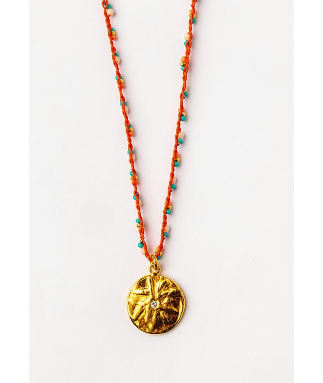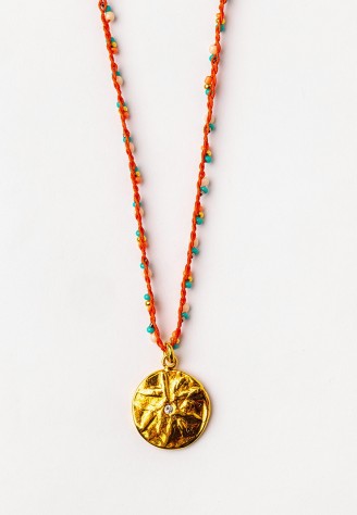 COLLAR LARGO TRENZADO A MANO CON PIEZAS BAÑO ORO, ROCALLA Y CRISTAL