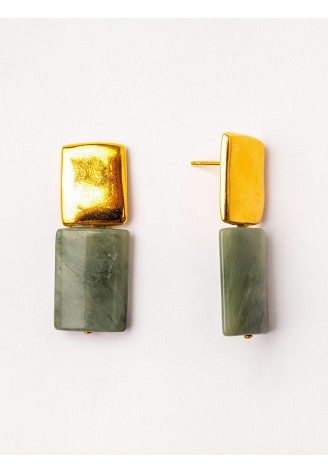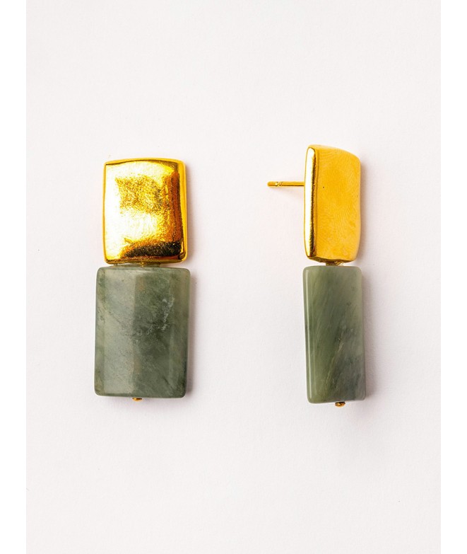 PENDIENTES BAÑO ORO CON ÁGATA VERDE