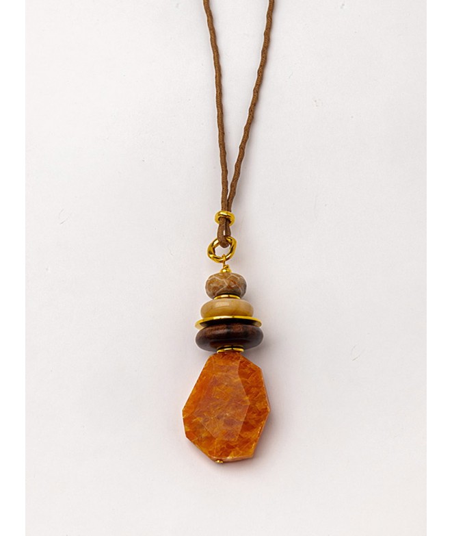 COLGANTE (HILO ALGODÓN) CON CALCITA NARANJA Y OTRAS GEMAS