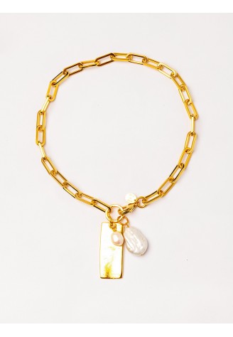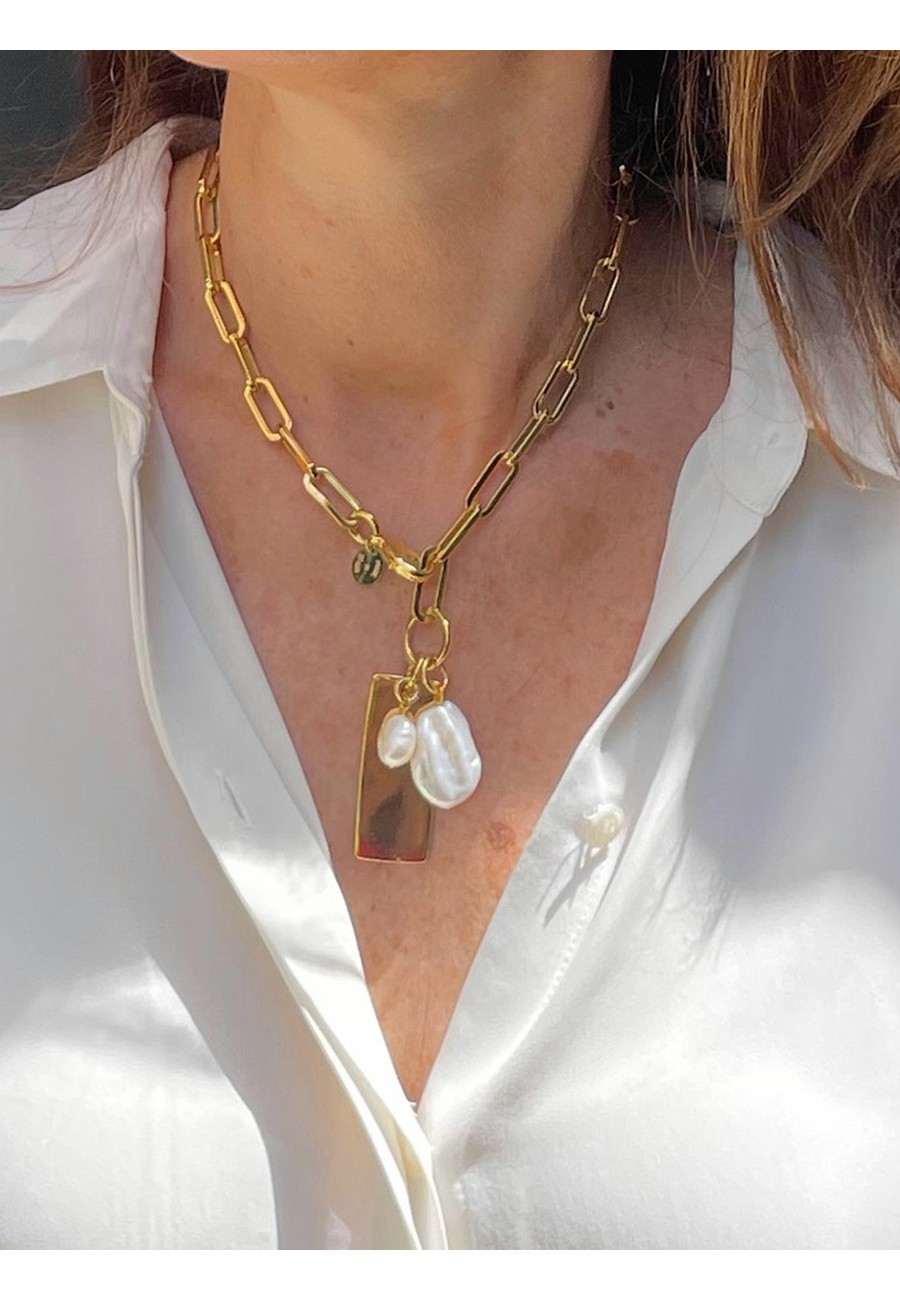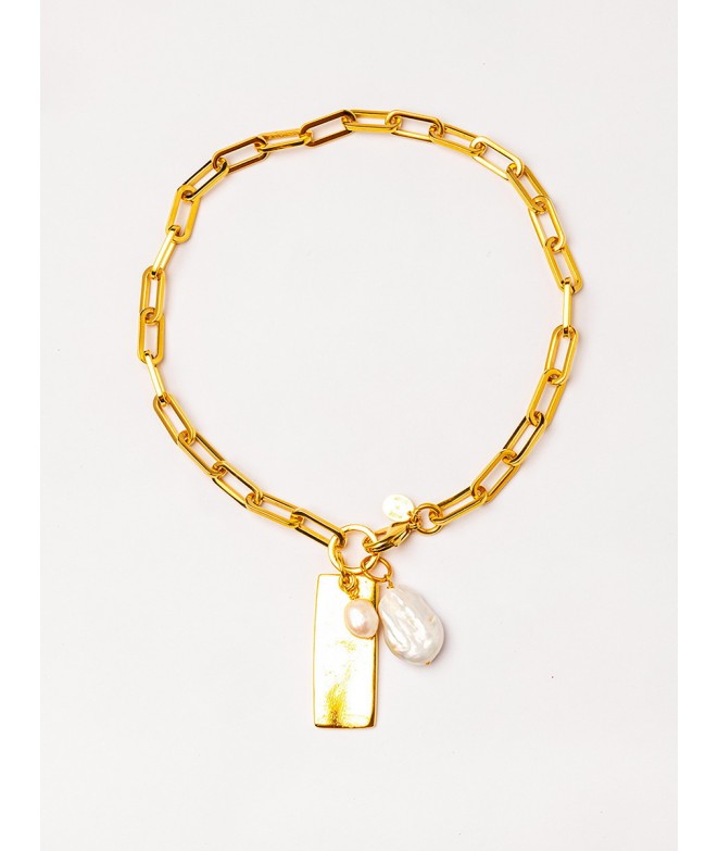COLLAR CORTOCADENA BAÑO ORO Y PERLAS