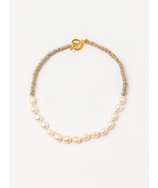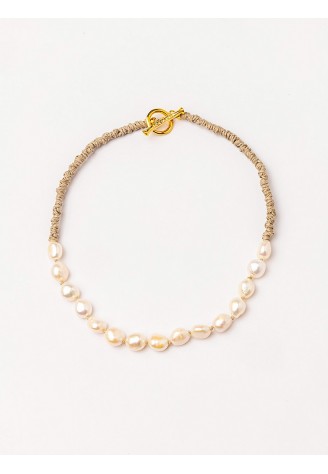 COLLAR CORTO LINO ANUDADO A MANO CON PERLAS