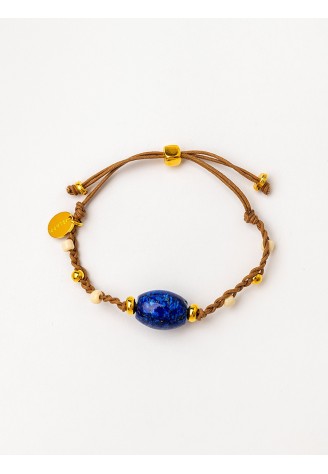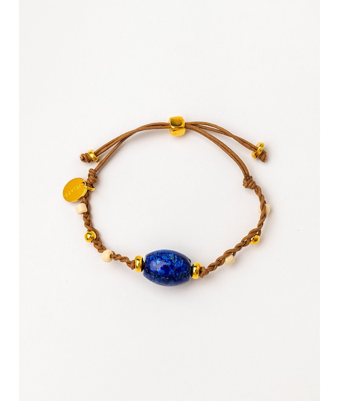 PULSERA TRENZADA A MANO PIEZAS BAÑO ORO Y LAPISLÁSZULI
