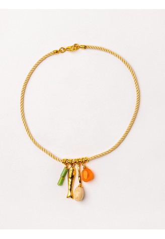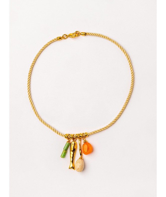 COLGANTE (HILO ALGODÓN) PIEZAS BAÑO ORO Y GEMAS