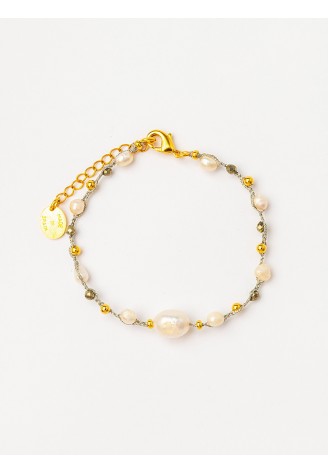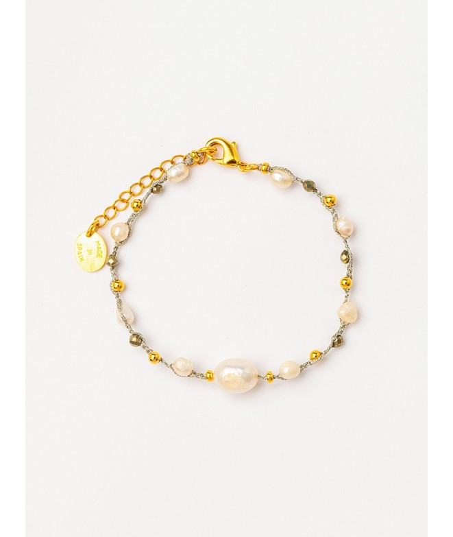PULSERA TRENZADA A MANO PIEZAS BAÑO ORO Y PERLAS