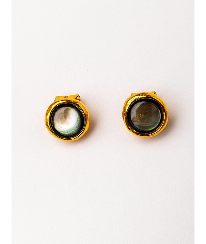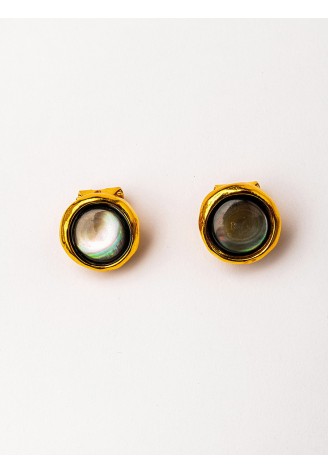 PENDIENTES CLIP BAÑO ORO CON MADREPERLAS NEGRAS