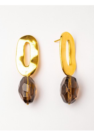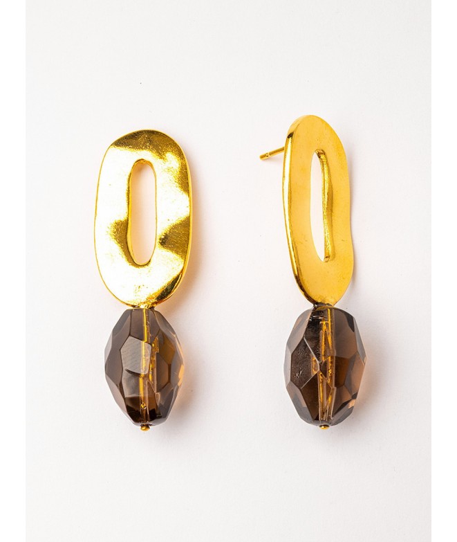 PENDIENTES BAÑO ORO CON CUARZO AHUMADO