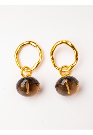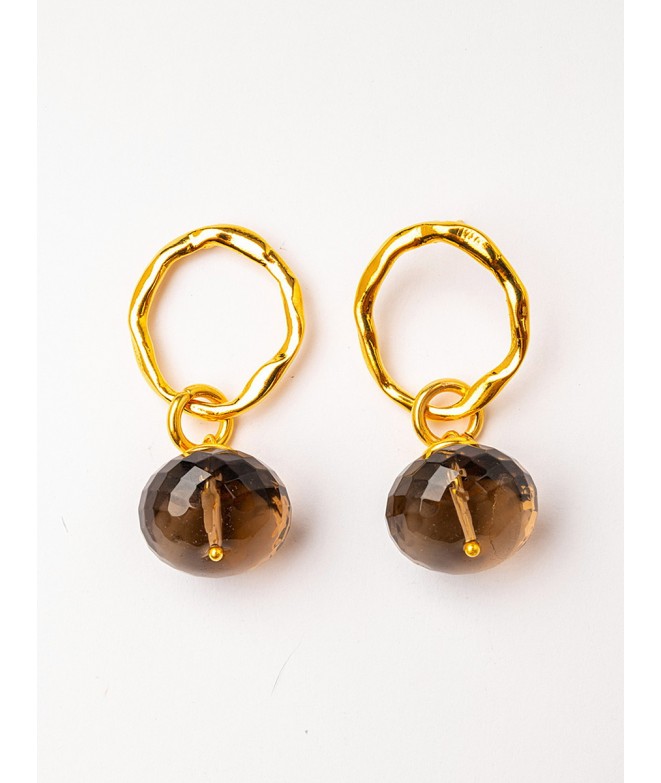 PENDIENTES BAÑO ORO CON CUARZO AHUMADO