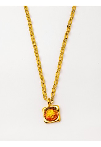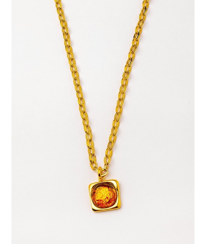 COLGANTE (CADENA) CON PIEZAS BAÑO ORO Y CRISTAL ROJO