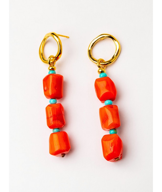 PENDIENTES BAÑO ORO CON CORAL