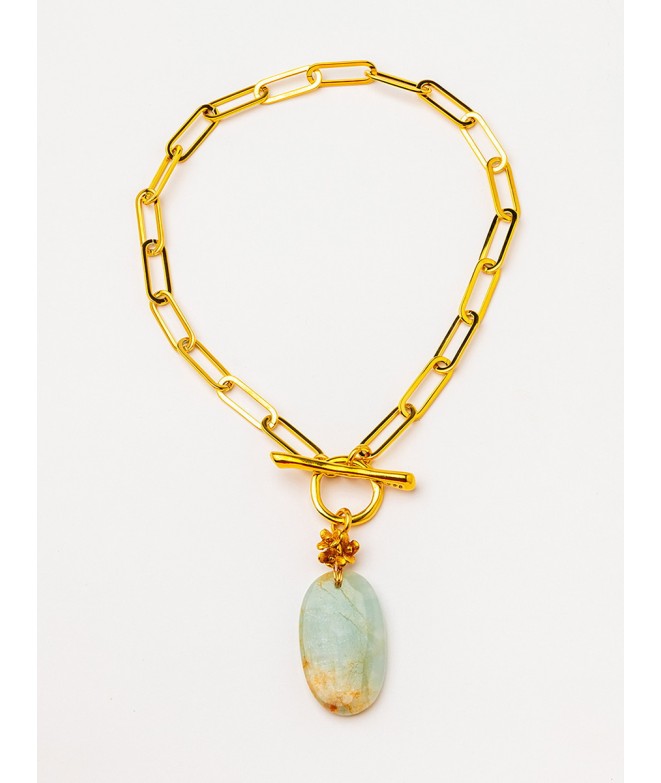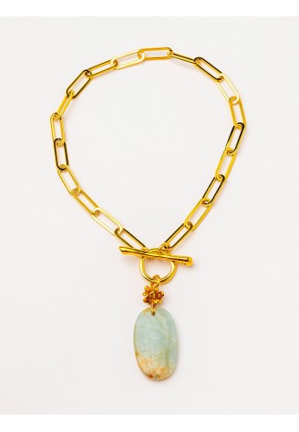 COLLAR CORTO CON CADENA Y AGUAMARINA