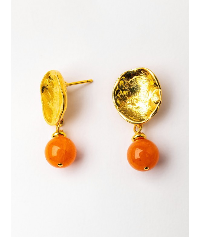 PENDIENTES BAÑO ORO CON CALCITA NARANJA