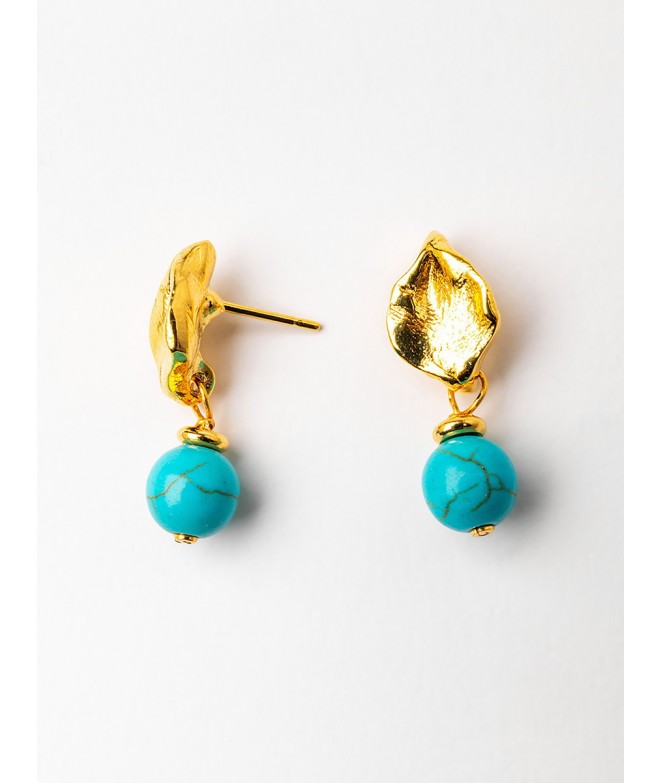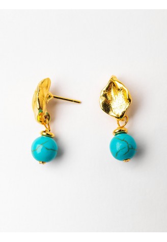 PENDIENTES BAÑO ORO CON HOWLITA AZUL