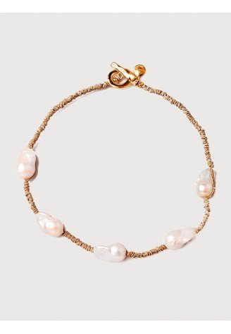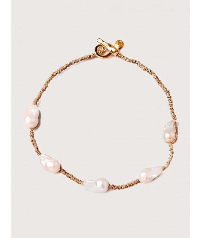 COLLAR CORTO LINO ANUDADO A MANO CON 5 PERLAS BARROCAS