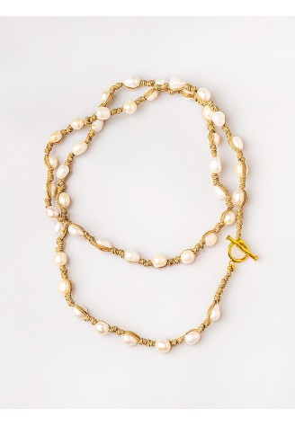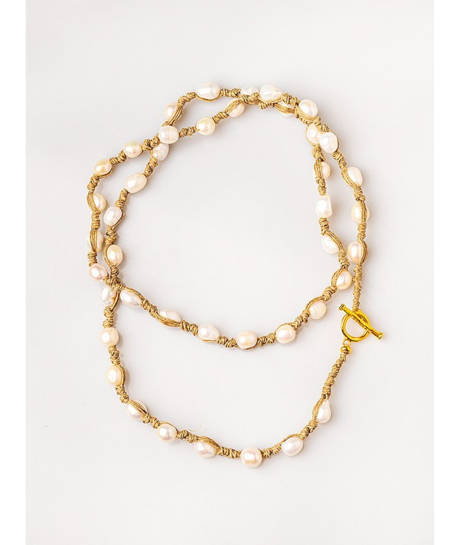 COLLAR LARGO LINO ANUDADO A MANO CON PERLAS