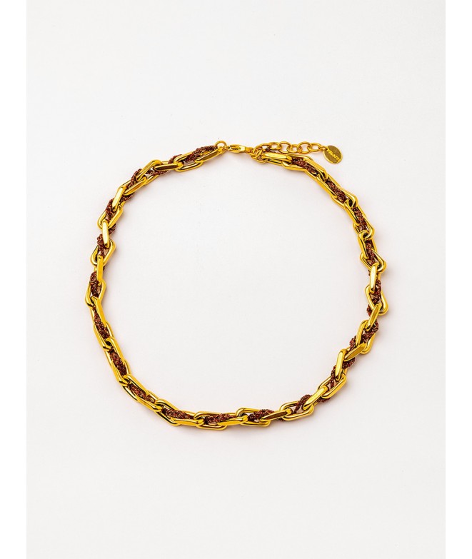 COLLAR CORTO CON CADENA E HILO DORADO BURDEOS