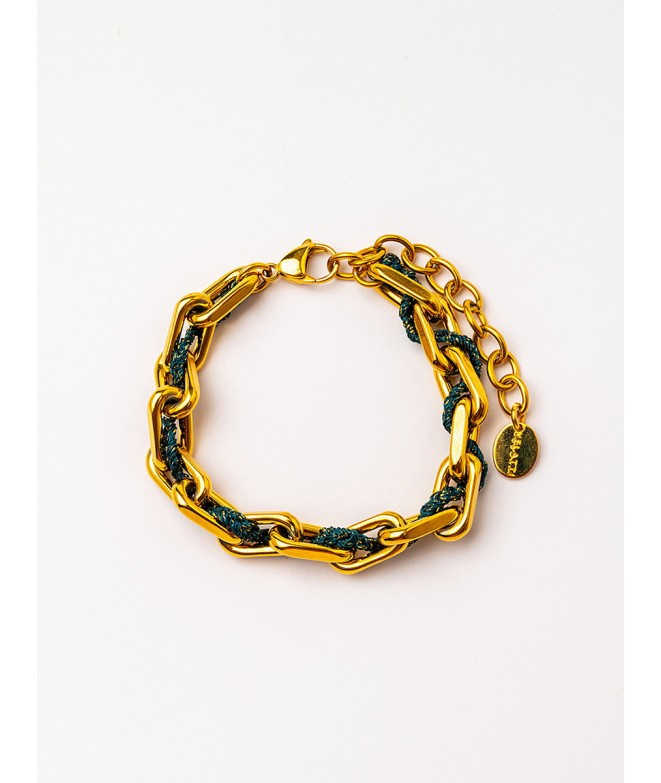 PULSERA CON CADENA BAÑO ORO E HILO AZUL